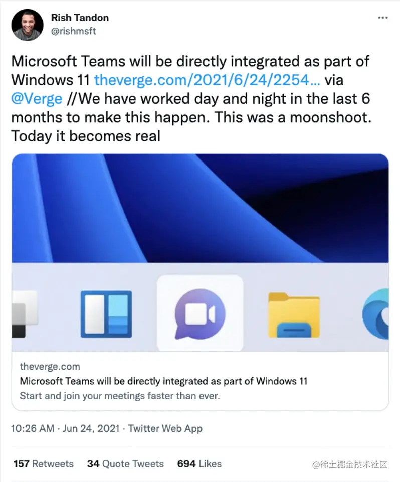 微软正在将 Teams 从 Electron 迁移到Edge WebView2。