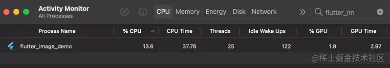 - Flutter CPU:~13.6% 和 GPU:~2.97%