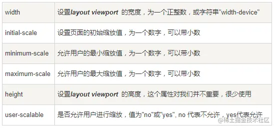 meta viewport 有6个属性(暂且把content中的那些东西称为一个个属性和值),如下: