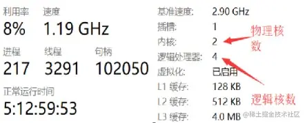 - 三、物理核数(某个CPU)