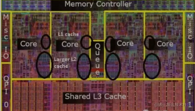 一样的多个核之间的L1、L2也会有缓存一致性问题,相似多核CPU有一些协议保证多个CPU内部缓存之间一致性的协议(MESI),同一个CPU内部的多核内部的缓存的一致性问题应该也是有方案解决的。
