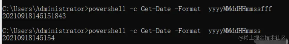 powershell -c Get-Date -Format yyyyMMddHHmmssfff