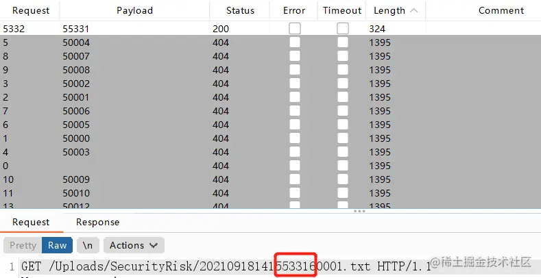 这种类型一般以20210917xxxxx这种格式,xxxx应该为毫秒级别的数字,我们可以直接使用Burp进行爆破跑,4——6位还是可能跑的出来的,再多就跑不出来了。