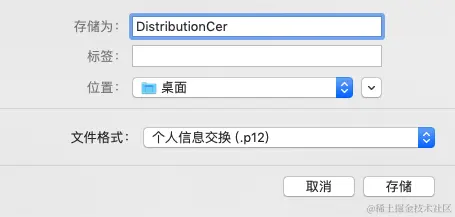 如果.p12不可选 查看以下步骤是否完成 打开菜单 “钥匙串访问”->“证书助理”,选择“从证书颁发机构请求证书.
