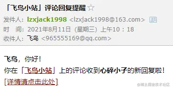 // 博客评论收到回复后的邮件提醒服务