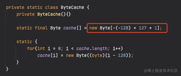 而ByteCache, ShortCache, LongCache, 执行相同策略-128-127, CharacterCach支持的是0-128。不支持JVM配置,具体见源码类结构。以ByteCache为例: