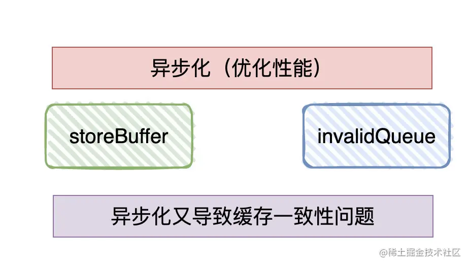 - 但“同步通知”会影响性能,所以会有内存缓冲区(store buffer/invalid queue)来实现「异步」进而提高CPU的工作效率