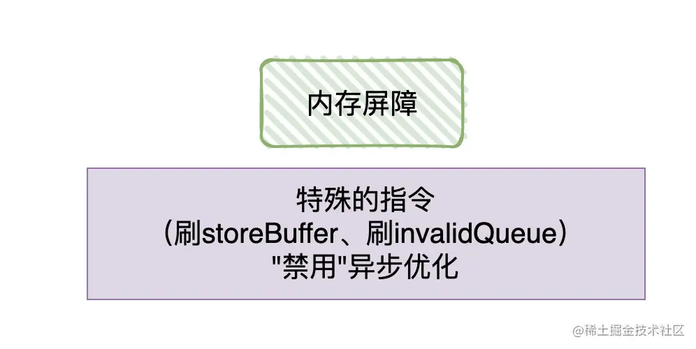 - “禁用”缓存优化在CPU层面下有「内存屏障」,读屏障/写屏障/全能屏障,本质上是插入一条”屏障指令”,使得缓冲区(store buffer/invalid queue)在屏障指令之前的操作均已被处理,进而达到 读写 在CPU层面上是可见和有序的。