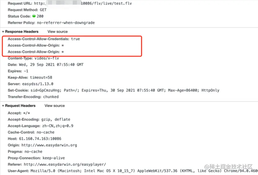 在访问flv地址时,后端重新代理访问本地flv地址将跨域设置为空,避免设置多个跨域头。