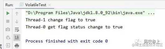 下面,我们在flag加上volatile关键字修饰,再执行一次上面的代码: