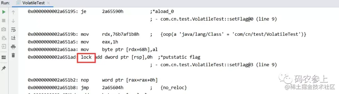 -XX:CompileCommand=compileonly,*VolatileTest.setFlag