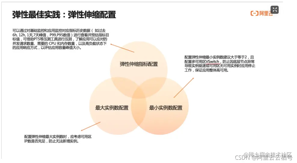 同时弹性配置应考虑梳理上下游,中间件,db等相关依赖,配置对应的弹性规则或者限流降级手段,确保扩容时全链路可以保证可用性。