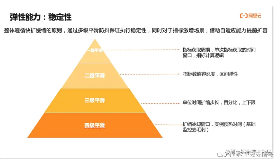 - 三级平滑:对单位时间扩缩步长,百分比,上下限进行配置