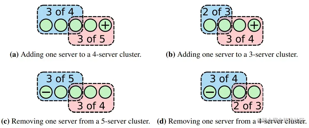 图4 增加或删除一个成员时Cold与Cnew的Quorum
