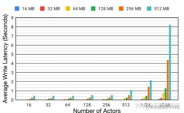为了更好地了解分布式设置中重播缓冲区的效率,我们评估了从 16 MB 到 512 MB 的各种有效负载大小和从 16 到 2048 个不等的参与者的平均写入延迟。我们在重播缓冲区和演员被放置在同一个博格牢房中。随着参与者数量的增加,平均写入延迟也显着增加。扩大行动者的数目为16〜2048,由〜6.2倍的平均写入延迟增加X和〜18.9 X为有效载荷大小16 MB和512 MB,分别。写入延迟的增加会对数据收集时间产生负面影响,并导致整体训练时间效率低下。