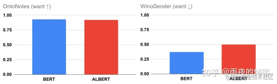 - 测量意外相关性很重要:可以使用准确度指标评估模型质量,但这些指标仅衡量性能的一个维度,尤其是当测试数据与训练数据来自相同的分布时。例如,BERT 和 ALBERT 检查点的准确度彼此相差在 1% 以内,但它们使用性别相关性进行共指解析的程度相差 26%(相对)。这种差异对于某些任务可能很重要;选择具有低 WinoGender 分数的模型可能适用于包含有关可能不符合历史社会规范的专业人士的文本的应用程序,例如男护士。