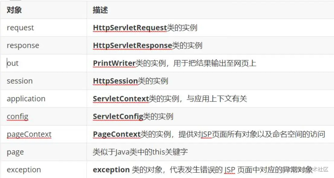 - JSP声明语句块中可以声明静态代码块、方法、添加访问权限修饰符的变量。