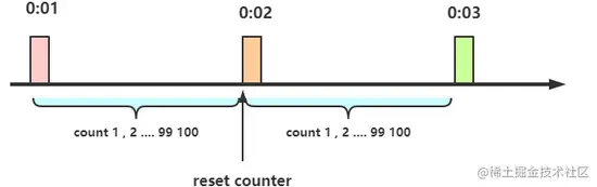 计数器算法是限流算法里最简单也是最容易实现的一种算法。举个例子,比如我们规定对于A接口,我们1分钟的访问次数不能超过100个。那么我们可以这么做:在一开始的时候,我们可以设置一个计数器counter,每当一个请求过来的时候,counter就加1,如果counter的值大于100并且该请求与第一个请求的间隔时间还在1分钟之内,那么说明请求数过多,拒绝访问;如果该请求与第一个请求的间隔时间大于1分钟,且counter的值还在限流范围内,那么就重置counter,就是这么简单粗暴。