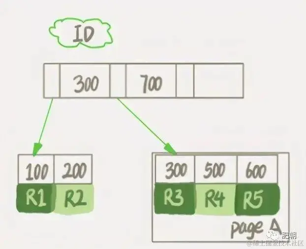 InnoDB 直接将 R4 这条记录标记为删除,称为可复用的位置。如果之后要插入 ID 在 300 到 700 间的记录时,就会复用该位置。