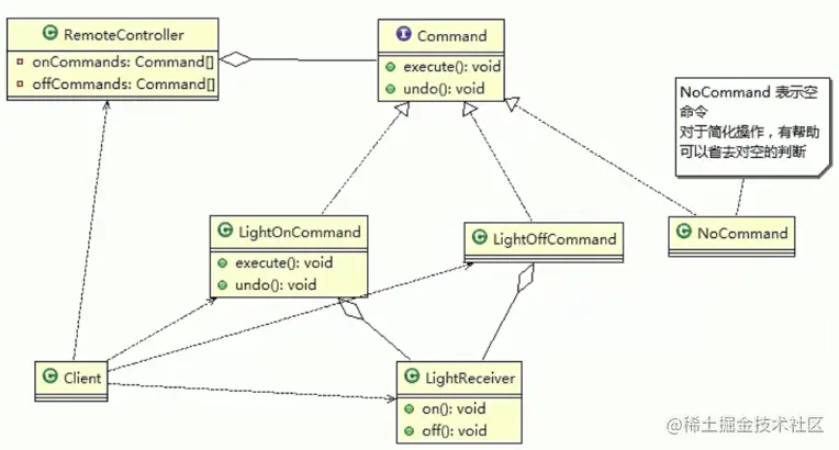 * 没有任何命令,即空执行: 用于初始化每个按钮, 当调用空命令时,对象什么都不做