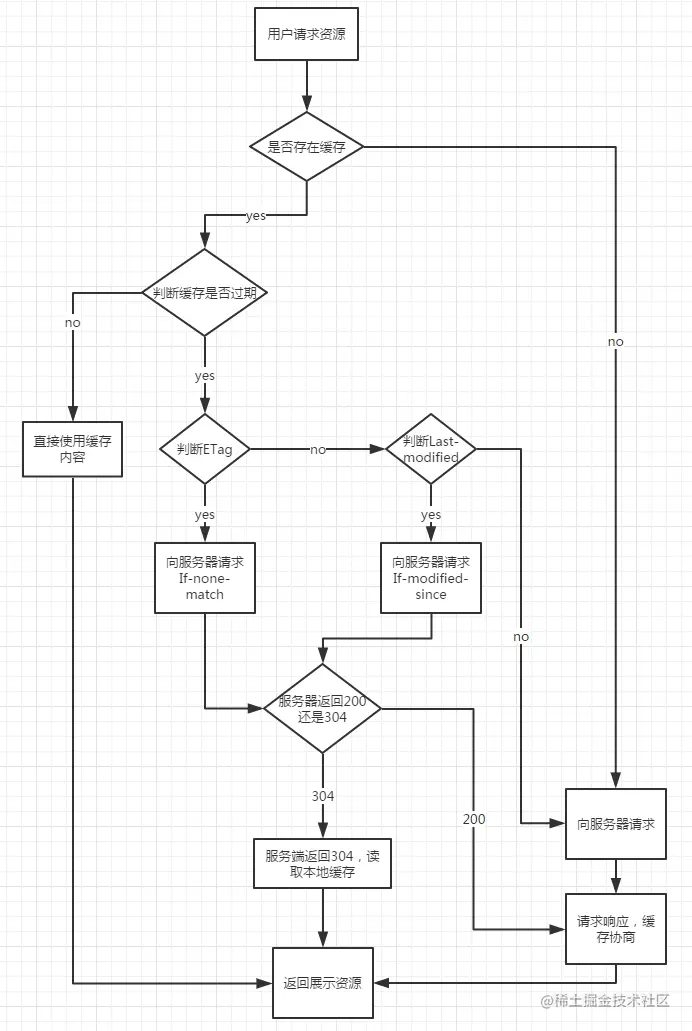 request Header中的一些字段来判断是否命中协商缓存,如果命中,服务器会返回304响应,但是不会携带任何响应实体,只是告诉浏览器可以直接从浏览器缓存中获取这个资源,如果本地缓存和协商缓存都没有命中,则直接从服务器加载资源