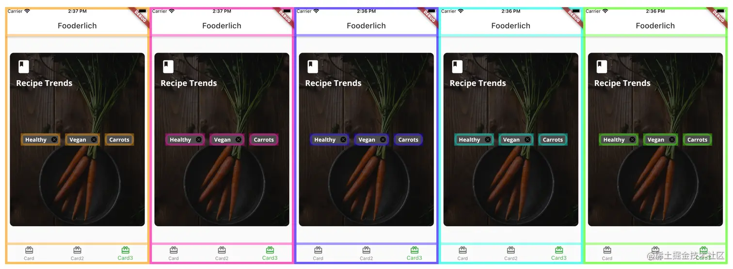 - 重绘彩虹。每次Flutter重绘小部件时都会给它添加一个随机的边框。
