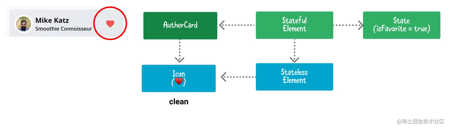 例如,使用有状态的部件的一个好时机是当用户点击一个喜爱的按钮来切换一个简单的布尔值。