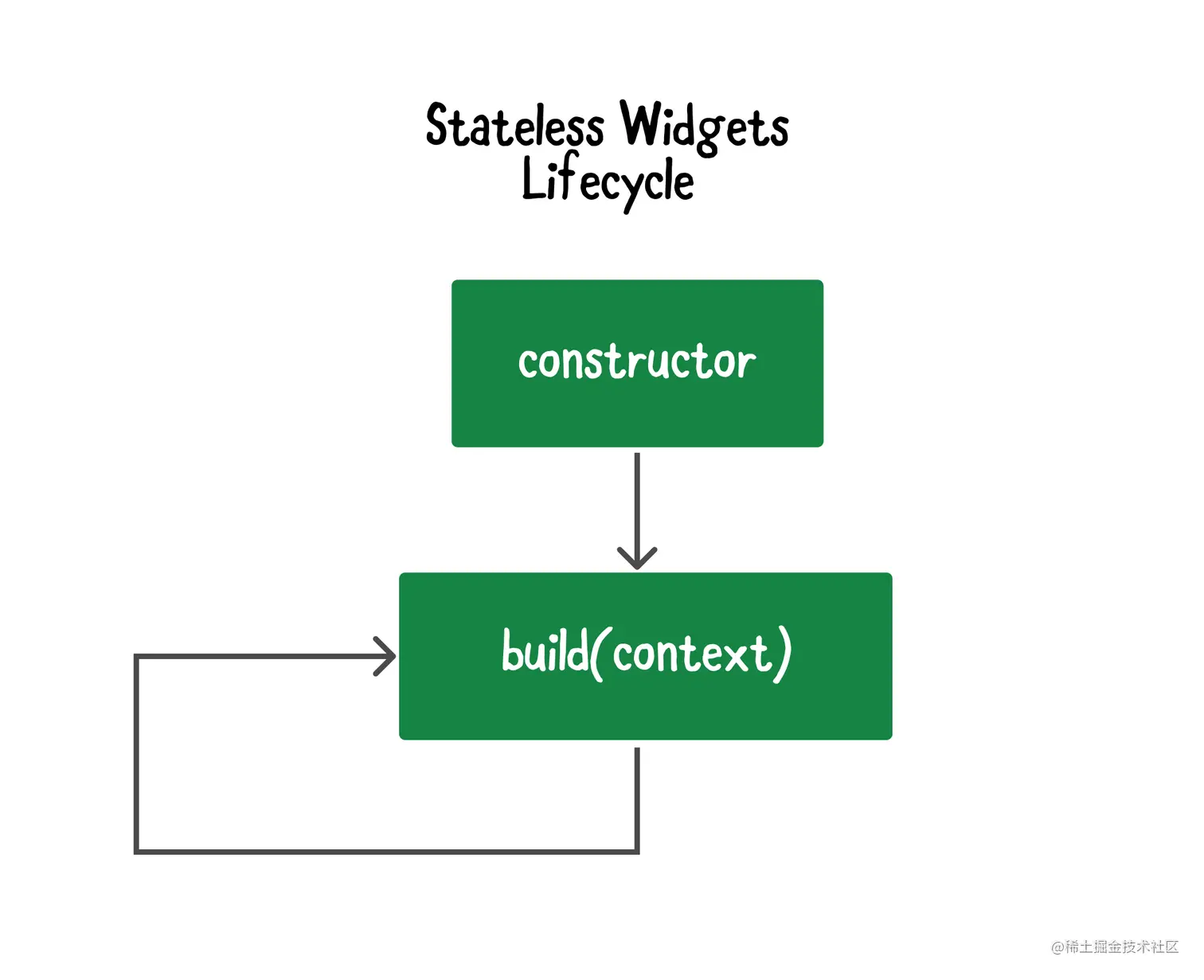 无状态小组件的生命周期始于一个构造函数,你可以向其传递参数,以及一个build()方法,你可以重写该方法。小组件的视觉描述是由build()方法决定的。