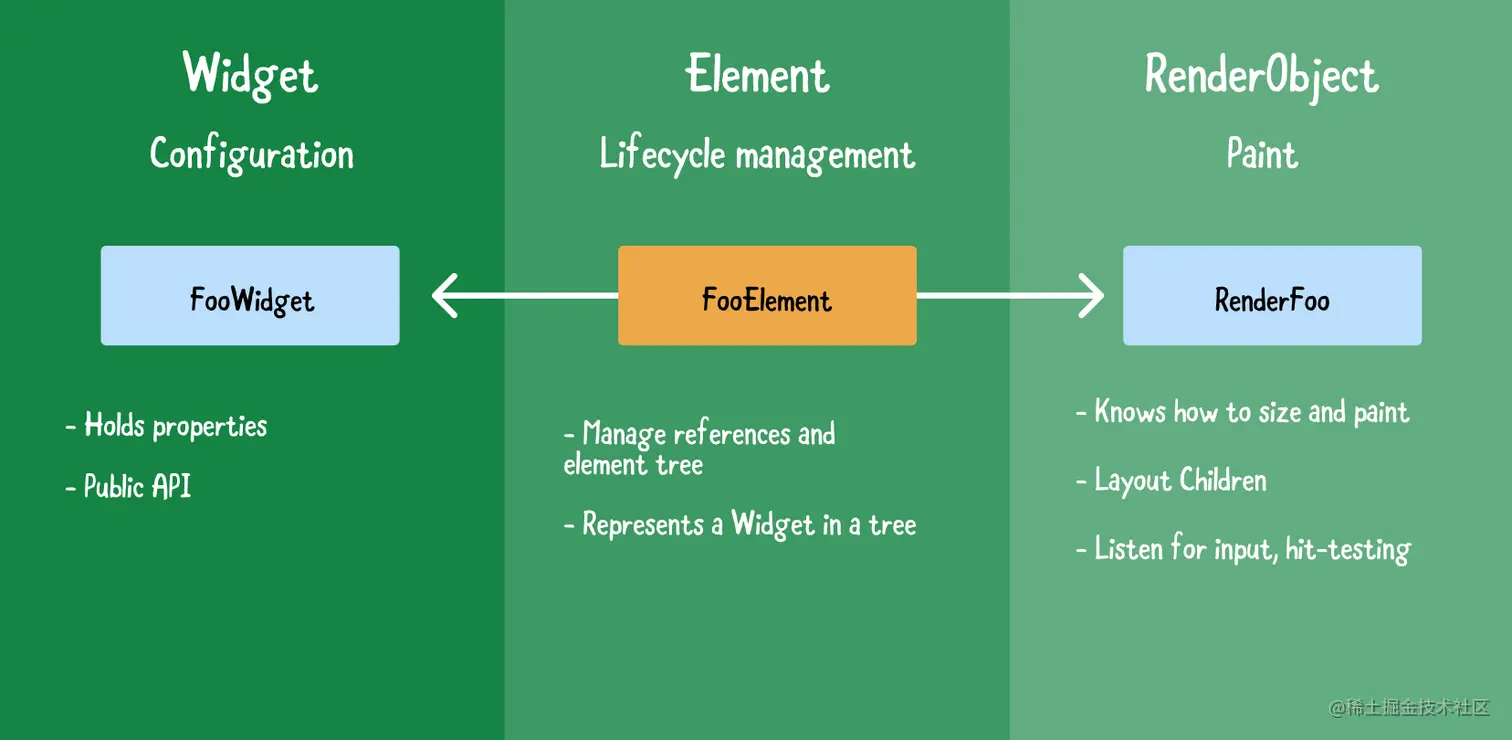 注:关于更多细节,请查看YouTube上的Mahogany staircase - Flutter分层设计,Ian Hickson在那里雄辩地介绍了Flutter部件在引擎盖下的工作原理。youtu.be/dkyY9WCGMi0