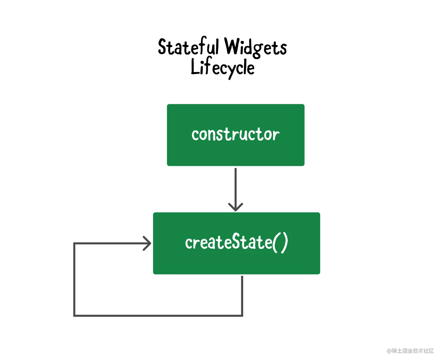 回顾一下,框架将构建widget树,并为每个widget实例创建一个元素对象。在这种情况下,该元素是一个StatefulElement,它管理着状态对象,如下图所示。