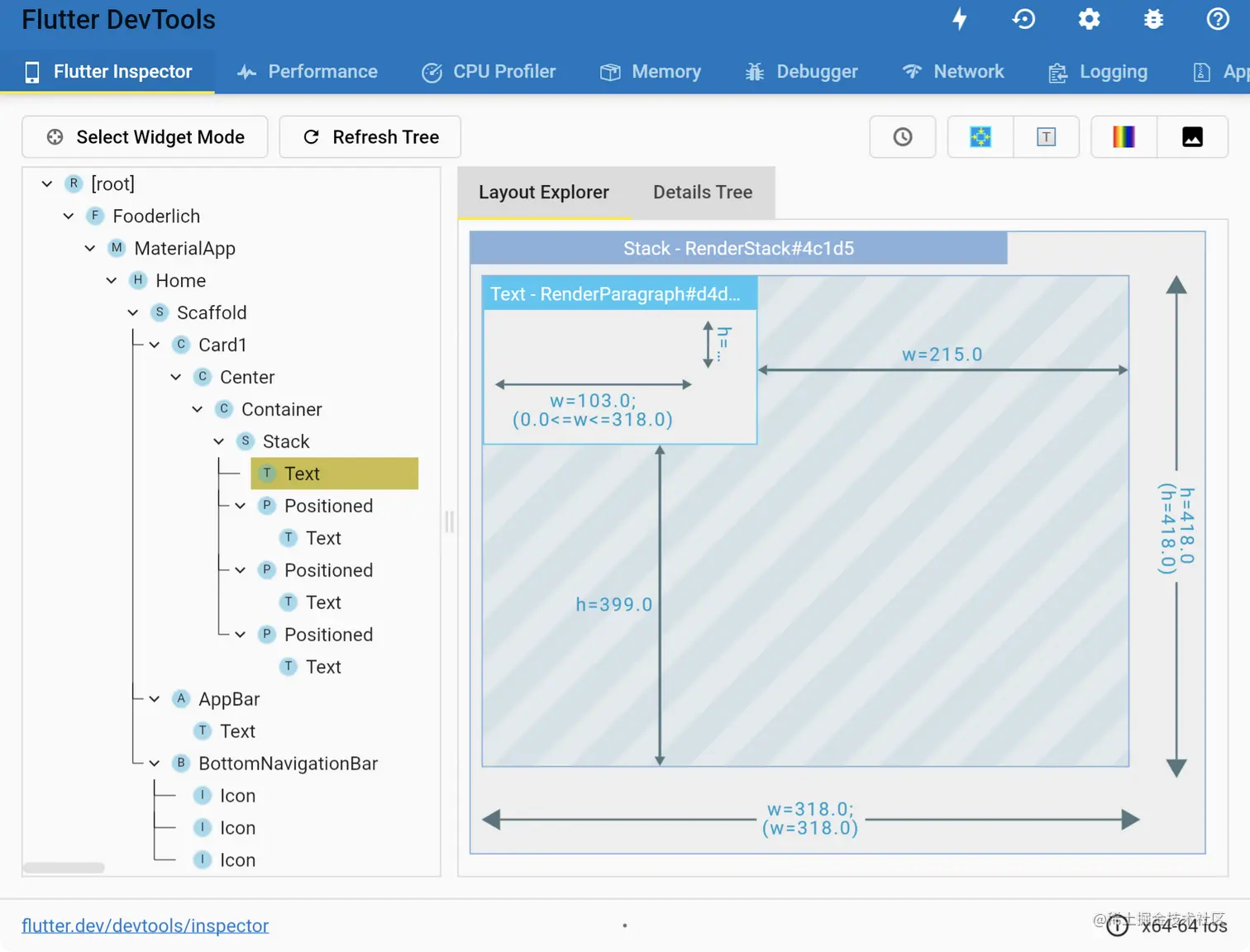 - Flutter检查器是一个有用的工具,用于调试、实验和检查小部件树。