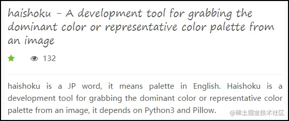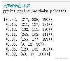 导入模块,运行代码会返回一个Haishoku实例,你可以通过实例属性haishoku.dominant 和 haishoku.palette,从而直接获取到对应的主色调和配色方案。