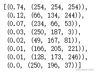 返回一个结构为:[(R, G, B), (R, G, B), …] 最大长度为8的数组。