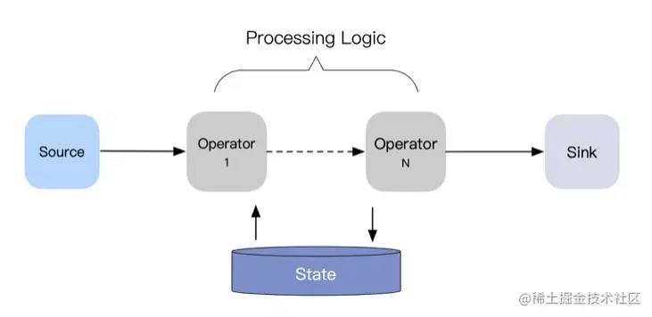 - 流 -> 流:没有聚合操作的数据处理过程;