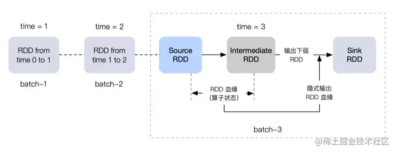 这里提到的 Spark Streaming 指的是原始的基于「Micro-batch,微批」的 Spark 流处理引擎,后面 Spark 又提出了Structured Streaming,使用 Continuous Processing mode 来替代「微批」解决延迟的问题,容错机制上和 Flink 一样也使用了Chandy-Lamport 算法,Structured Stream 目前还不成熟,暂时还不能完全支持 Exactly-Once-Processing,因此这里着重对比 Spark Streaming。