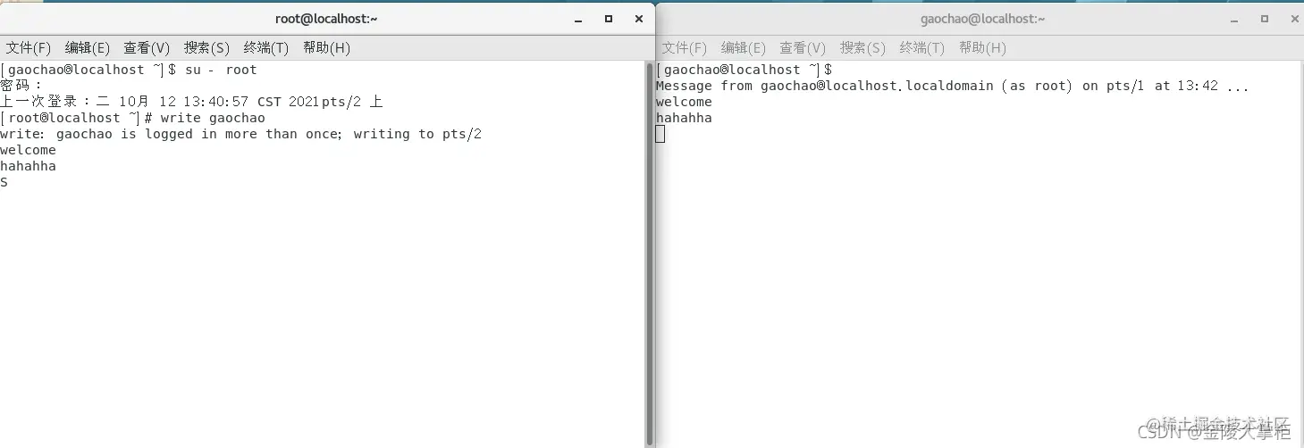 1、 键入write username,username 是用户的注册名,实例中为gaochao。