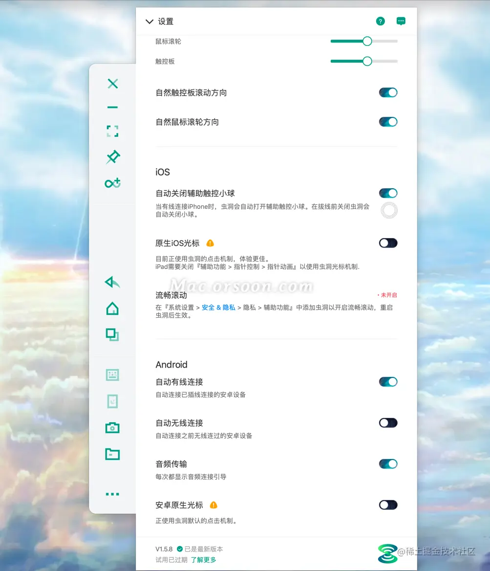 Wormhole for mac中文免费版是一款非常强大的手机控制软件,Wormhole mac中文版可以让您实现在Mac电脑上控制iOS和Android设备,你可以使用Wormhol在你的Mac上、玩王者荣耀、刷微博等等,不过稍许遗憾的就是控制Ios端需要另外收费。小编亲测,打字,游戏操作几乎没有延迟,逛淘宝的好伙伴。