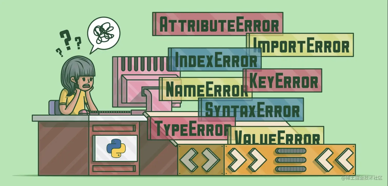 在编程时,知道如何在程序引发异常时读取 Python 异常信息非常有用,如果再了解一些常见的异常类型那就更好了。 有时候在面试的时候也会遇到提问 Python 中常见的异常类型,以及其含义,所以这里也建议大家都了解以下。 下面就列举一些出现频次高而且非常重要的异常类型,希望大家能够有一定的印象。