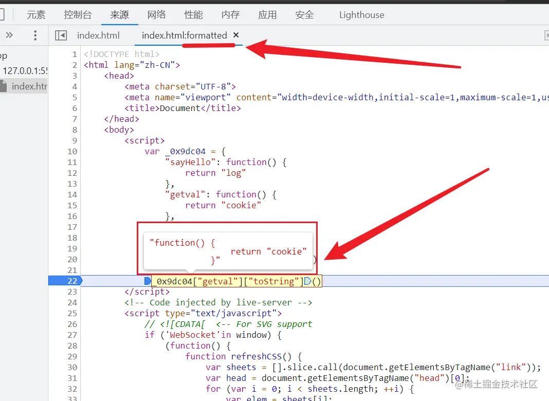 虽然看上去已经不可读,但是还原起来特别简单,在实际JS混淆的应用中,标识符一般不会替换成unicode形式,通常的混淆方式是替换成没有语义,但看上去很相似的名字,如O00Oo0、Oo0000、_0x21dd83、_0x21dd84