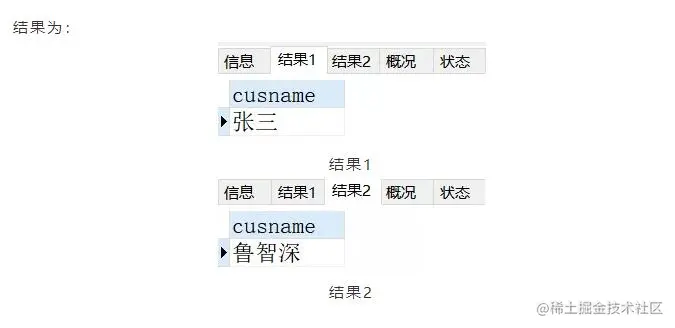 第一次我们将先定义好的“张三”(SET @cusname='张三')传递给参数cusname,此时它为输入参数。进入过程体后首先输出结果1为“张三”,此时参数cusname为输出参数;
