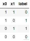 xor_dataset = pd.DataFrame([[1,1,0],[1,0,1],[0,1,1],[0,0,0]],columns=['x0','x1','label'])