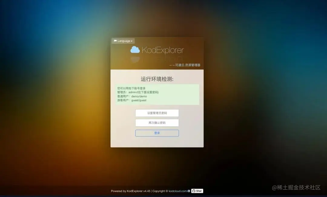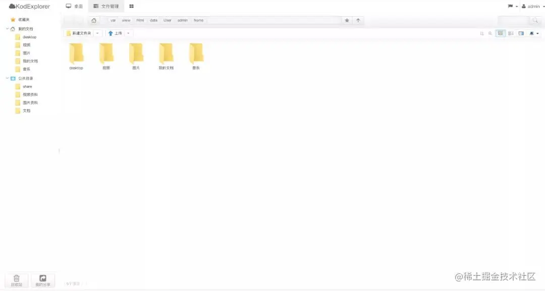 4.2 登录KodExplorerd后,就进入了一个类似Windows操作系统界面,可以管理应用中的文件