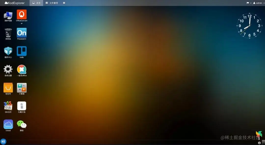 KodExplorer可道云,原名芒果云,是基于Web技术的私有云和在线文件管理系统。致力于为用户提供安全可控、可靠易用、高扩展性的私有云解决方案。用户只需通过简单环境搭建,即可使用KodExplorer快速完成私有云/私有网盘/在线文档管理系统的部署和搭建。可道云提供了类windows经典用户界面,延续了windows平台的用户界面、操作逻辑和使用习惯,支持100余种文件格式的在线预览,解决了文件在线存储与管理、共享和跨平台访问、在线办公影音娱乐等一系列问题,使得用户的私有云产品可以拥有本地操作一样方便、快捷、安全的体验。