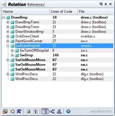 调用图 关系窗口是 Source Insight 的一项创新,可显示符号之间的有趣关系。它在自己的面板窗口中在后台运行并跟踪您选择的符号。它可以显示类层次结构、调用树、引用树等。
