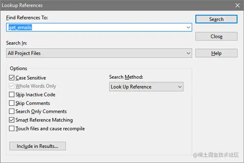 例如,您可以键入“保存磁盘(复制或复制) ”,Source Insight 将查找对“保存”、“磁盘”以及“复制”或“复制”的所有引用,这些引用彼此靠近(以及单词变体,例如“保存”、“保存”和“保存”),包括函数和变量名称,例如SaveFile或make_duplicate。