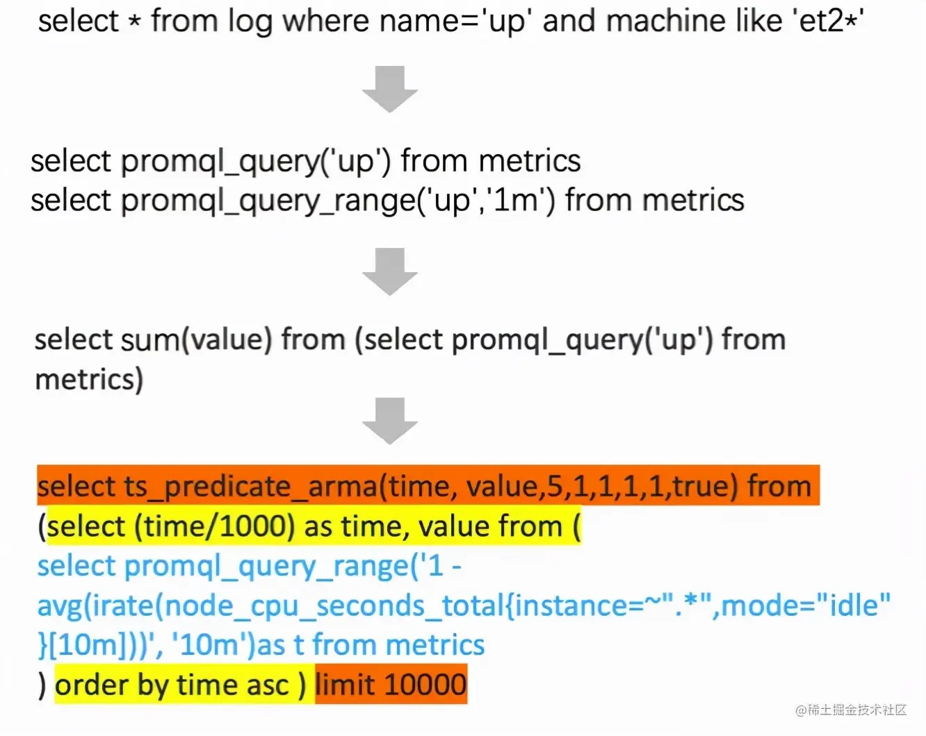 - 还可以通过 PromQL 扩展的 SQL 函数对指标数据进行分析