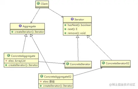 Aggregate :一个统一的聚合接口, 将客户端和具体聚合解耦