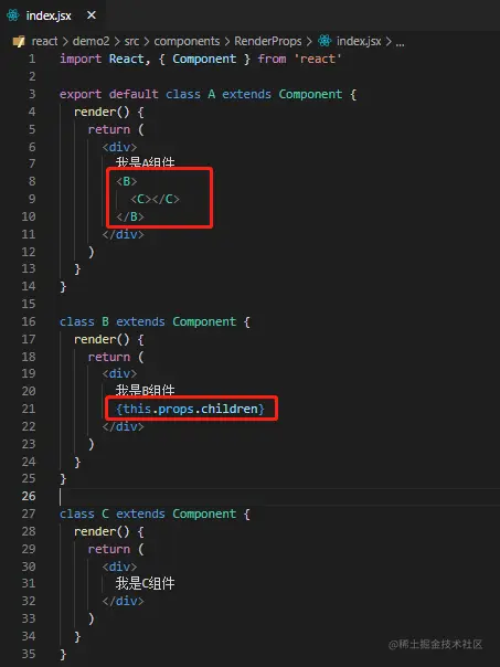 children props(如果C组件需要B组件内的数据==> 做不到)