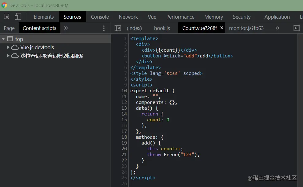 并且可以看到该错误发生在哪个组件,哪个文件的哪一行