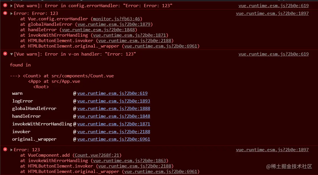 至此,Vue2 的异常监控就完成了,后续会写一篇 Vue3 的异常监控文章,逻辑上是一样的,区别在于 Vue3 采用 rollup 作为模块打包器,所以在编写打包插件的时候会有一些区别,感兴趣的点个关注吧!